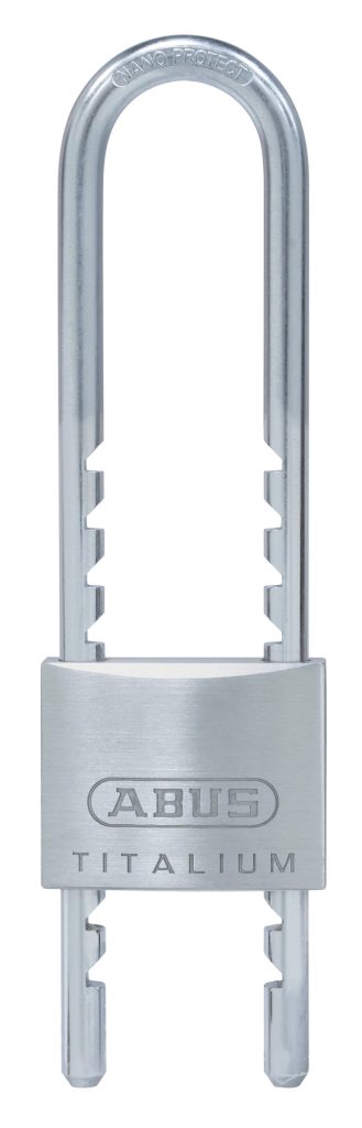 Whether doors or gates, cupboards or lockers, toolboxes or cellars: With this padlock your valuables are very well protected against theft. The lock body is made of TITALIUM™ special aluminium, which makes it particularly lightweight, yet robust. The paracentric key profile provides increased protection against manipulation, making attempts to break open the padlock 64 Titalium more difficult. If you need to connect locking points that are further apart, choose a version with a high bracket. This allows you to lock even thicker chains or solid locking bolts easily and comfortably.