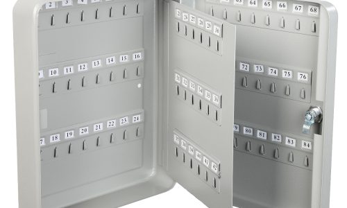 Key cabinets made of stamped steel and painted with epoxy powder coating. Wall fixable. Numbered coded Key Lock. Color: Grey Light
